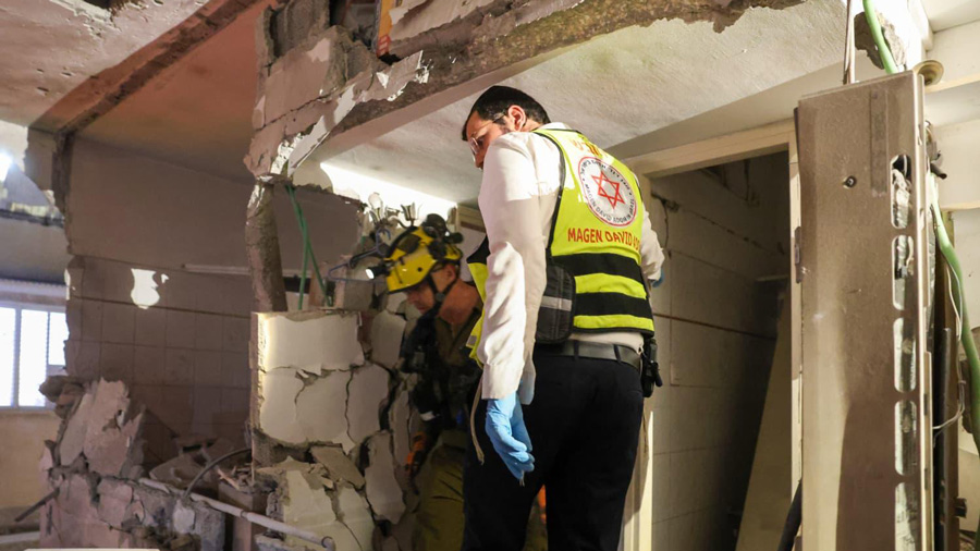 13h00 – MDA, secouriste senior Elad Kadmon : « Nous avons reçu un signalement d’impact de missile et sommes arrivés sur place avec des unités mobiles de soins intensifs, des ambulances et des medicycles du MDA.