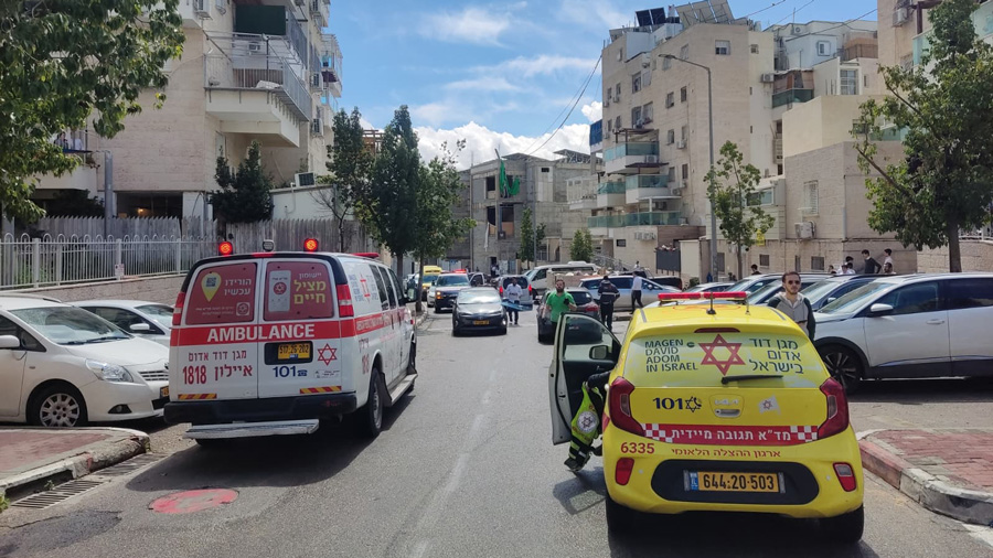 Dans la région de Bnei Brak, les EMT et paramédics MDA soignent sur place 3 victimes : un homme de 23 ans blessé par éclats, une femme octogénaire et un garçon de 7 ans en état léger avec blessures par éclats de verre.