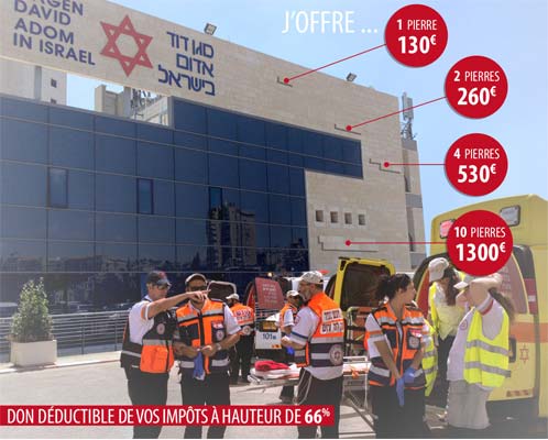 Pour la somme de 300 000 € et +, vous offrez aux secouristes du Maguen David Adom une station médicalisée du MDA.