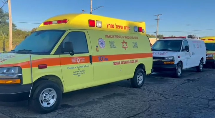Convoi spécial des États-Unis, avec des ambulances et des véhicules de soins intensifs qui aideront le Maguen David Adom à traiter les blessés dès ce week-end.