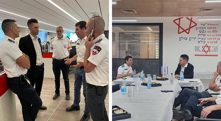 Idan ROLL, membre de la Knesset, s’est rendu aujourd’hui (19/10) au Centre national de répartition du Maguen David Adom à Kiryat Ono, où il a rencontré Eli BIN, Directeur Général du MDA Israël et les hauts responsables de l’organisation.