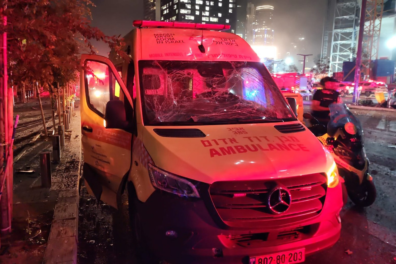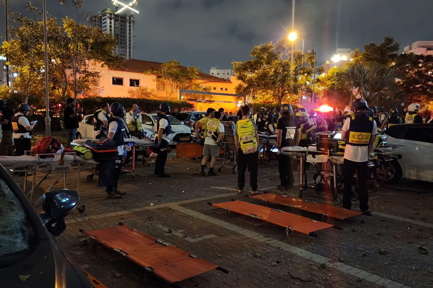 Le paramédic du MDA Yissachar Weiss a déclaré : « À notre arrivée sur le site de l’impact, nous avons constaté d’importants dégâts dans la rue touchée. Des blessés ont commencé à sortir des décombres. Un incendie important faisait rage, et de nombreux véhicules étaient en flammes. Nous avons commencé à rassembler les blessés aux points de triage, et avec l’arrivée d’un grand nombre d’ambulances et d’unités mobiles de soins intensifs sur place, nous avons commencé à prodiguer les premiers soins médicaux sur place. Les équipes du MDA ont continué à soigner les blessés jusqu’à leur transport vers les hôpitaux. »
