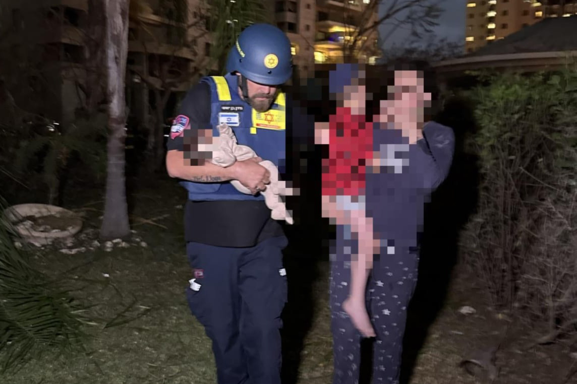 « Nous avons déployé une très forte équipe à l’entrée de l’immeuble de 20 étages touché par la roquette, afin de prodiguer des soins médicaux aux résidents qui quittaient le bâtiment — certains par leurs propres moyens, d’autres aidés par les pompiers et le Commandement du Front Intérieur. Une femme descendant du huitième étage tenait dans ses bras un garçon de 5 ans et une fillette d’une semaine. J’ai pris le bébé et aidé la femme à rejoindre l’ambulance du MDA, où nous avons effectué des contrôles médicaux initiaux avant de les évacuer à l’hôpital dans un état léger. »