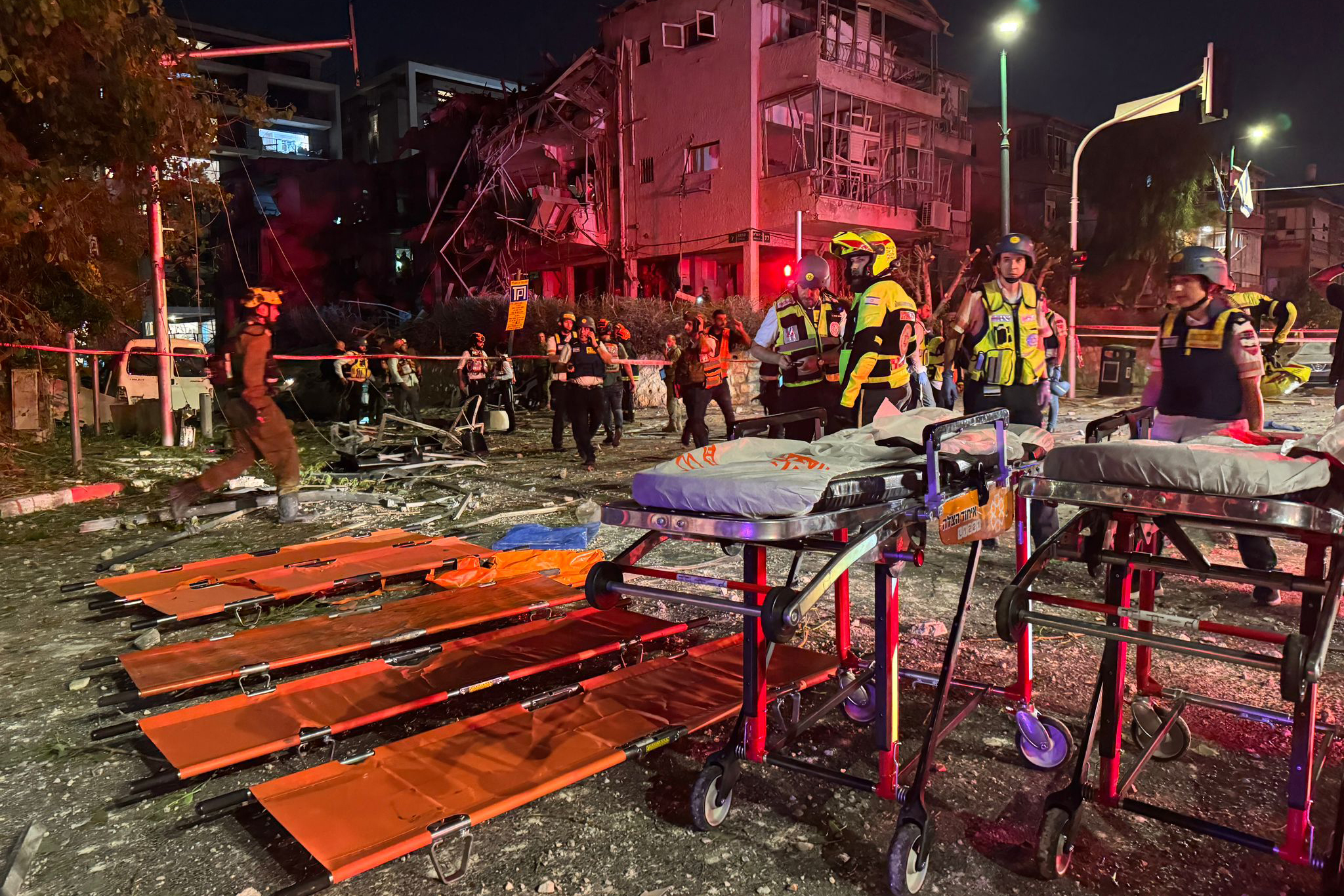Le secouriste du Maguen David Adom Moti Nissan a déclaré : « Il s’agit d’une scène de destruction à grande échelle. Plusieurs bâtiments résidentiels de deux étages ont été gravement endommagés, certains se sont effondrés. Nous sommes arrivés sur les lieux avec des forces importantes, incluant des unités mobiles de soins intensifs, des ambulances et des secouristes à moto. Nous avons immédiatement commencé les recherches avec les pompiers et le Home Front Command. Nous avons installé un point de rassemblement des blessés dans une zone sûre, où nous soignons actuellement plusieurs personnes légèrement blessées, dont certaines ont déjà été évacuées vers l’hôpital par les ambulances du Maguen David Adom. Nous sommes pleinement préparés à fournir des soins médicaux si d’autres victimes sont découvertes lors des recherches en cours. »