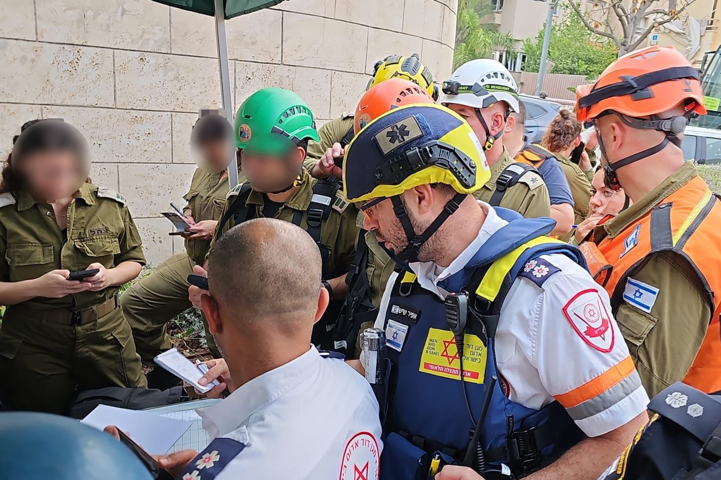 « Nous sommes arrivés rapidement en grand nombre, avec des unités mobiles de soins intensifs, des ambulances et des motos médicalisées. Nous avons constaté une épaisse fumée, des voitures en feu, et un bâtiment présentant d’importants dégâts, ainsi que des dommages dans plusieurs appartements. Nous avons installé deux postes de soins pour les victimes et procédons à des examens médicaux des résidents sortant des bâtiments. Parallèlement, en coordination avec le Commandement du Front Intérieur, les pompiers et la police, nous effectuons des recherches dans le bâtiment endommagé et les appartements touchés afin de vérifier qu’aucune victime blessée ne se trouve à l’intérieur. »