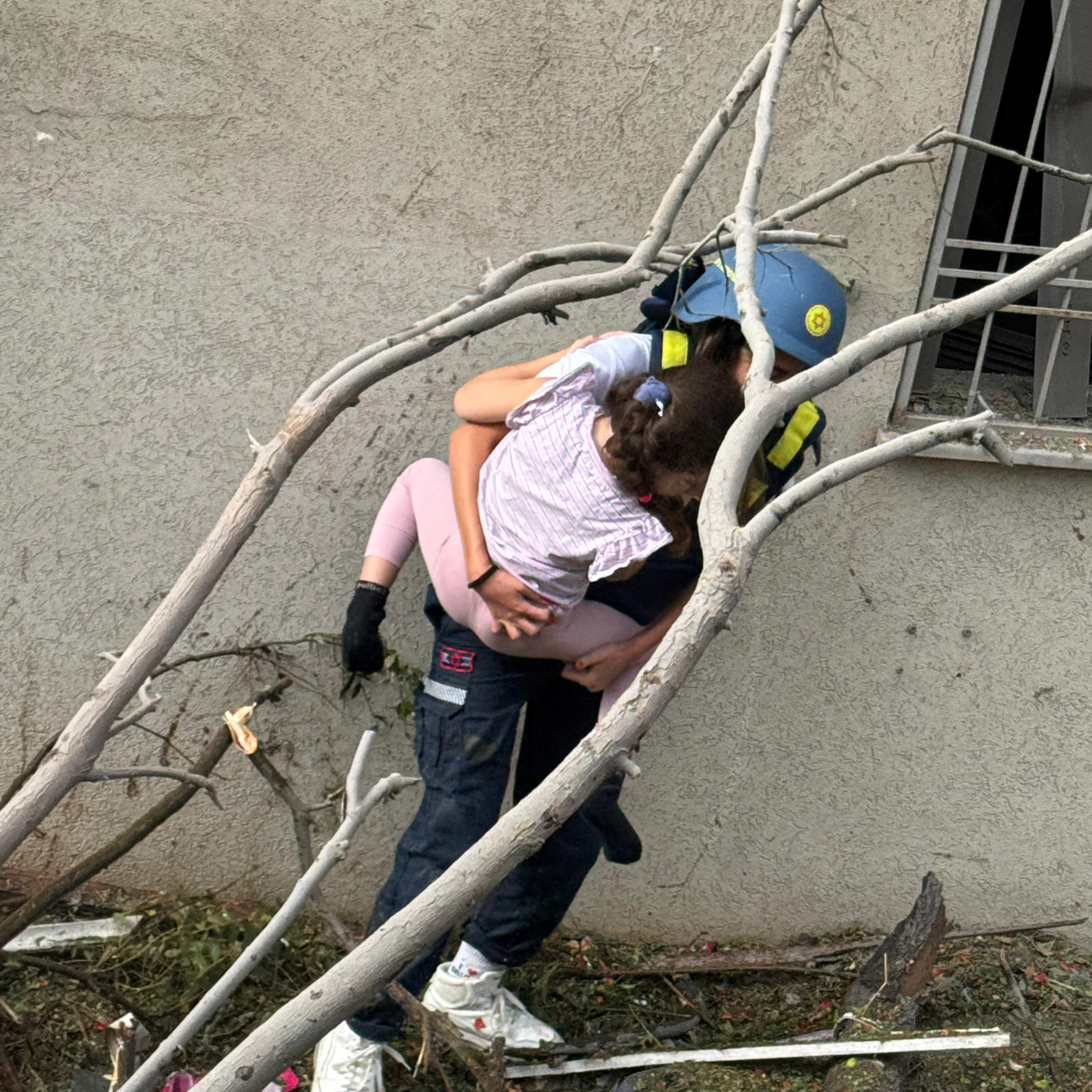 L’ambulancier Alon Weiss a déclaré :« La roquette a frappé un immeuble de 20 étages, causant d’importants dégâts à ce bâtiment, aux bâtiments environnants et à la rue. En prodiguant des soins aux résidents évacués devant l’immeuble, j’ai vu une femme tenant un bébé d’environ un an dans ses bras. Je me suis immédiatement précipité vers elle, ai pris le bébé et les ai aidés à rejoindre un lieu sûr. »